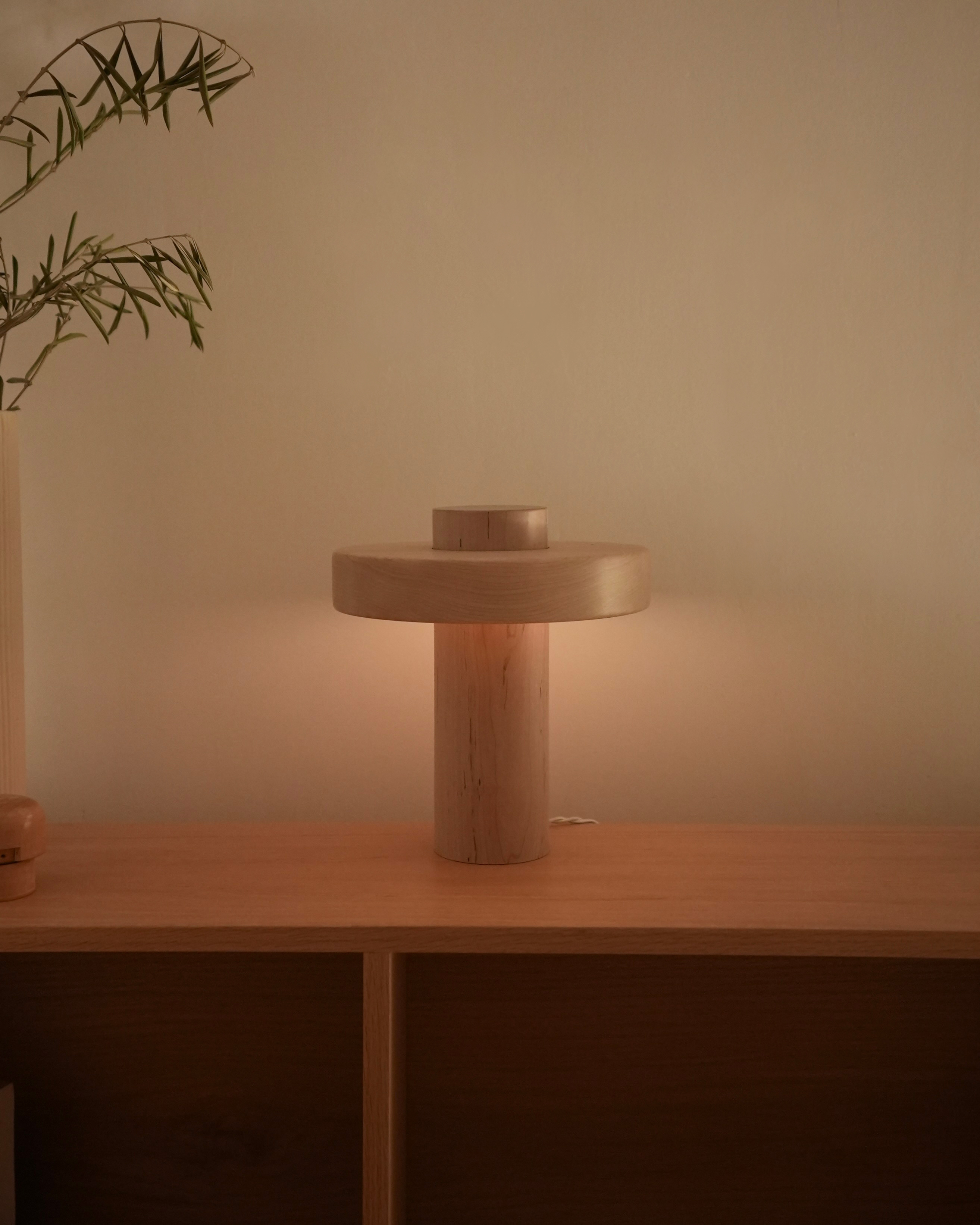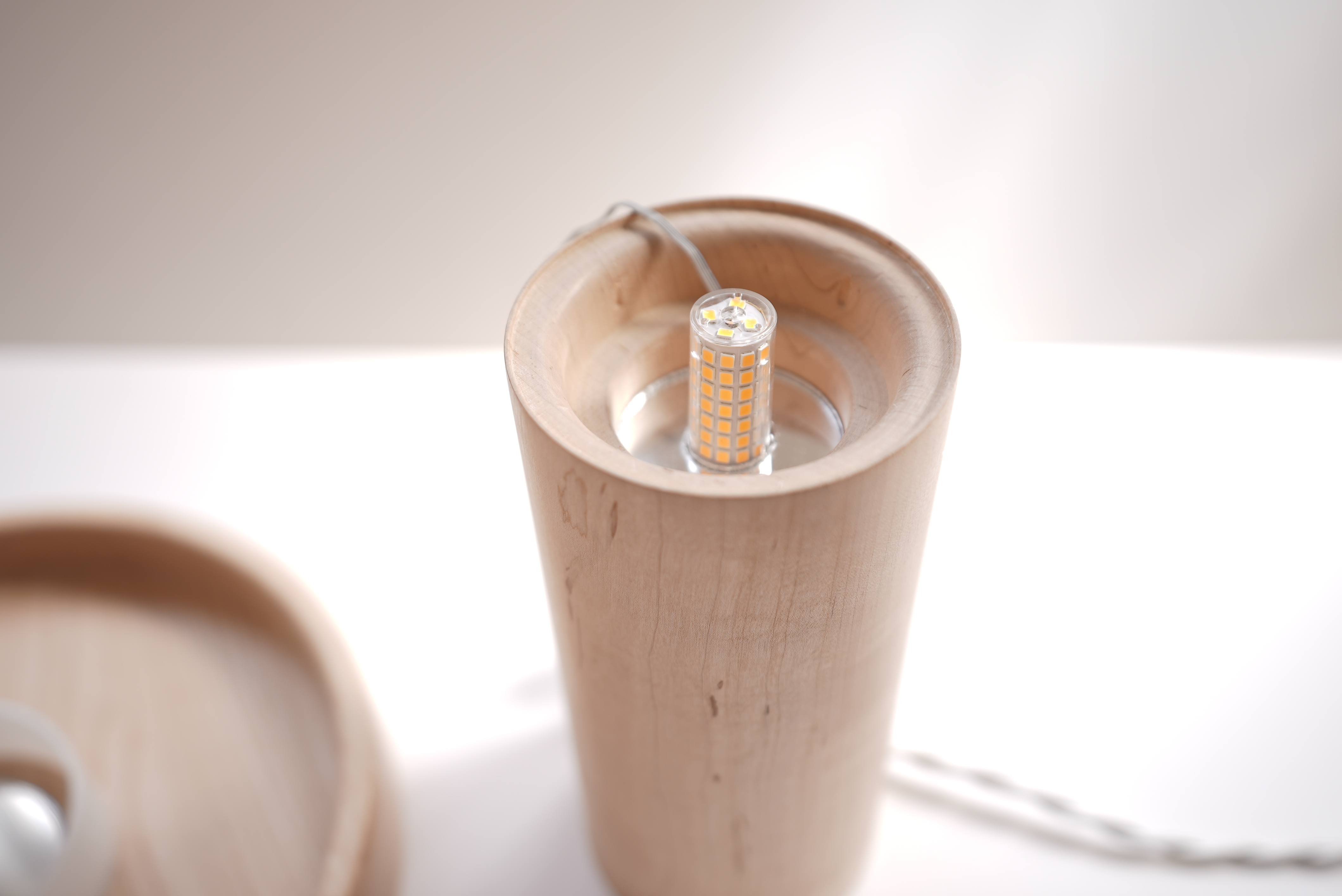 Hard maple, LED bulb, steel ball bearing, acrylic