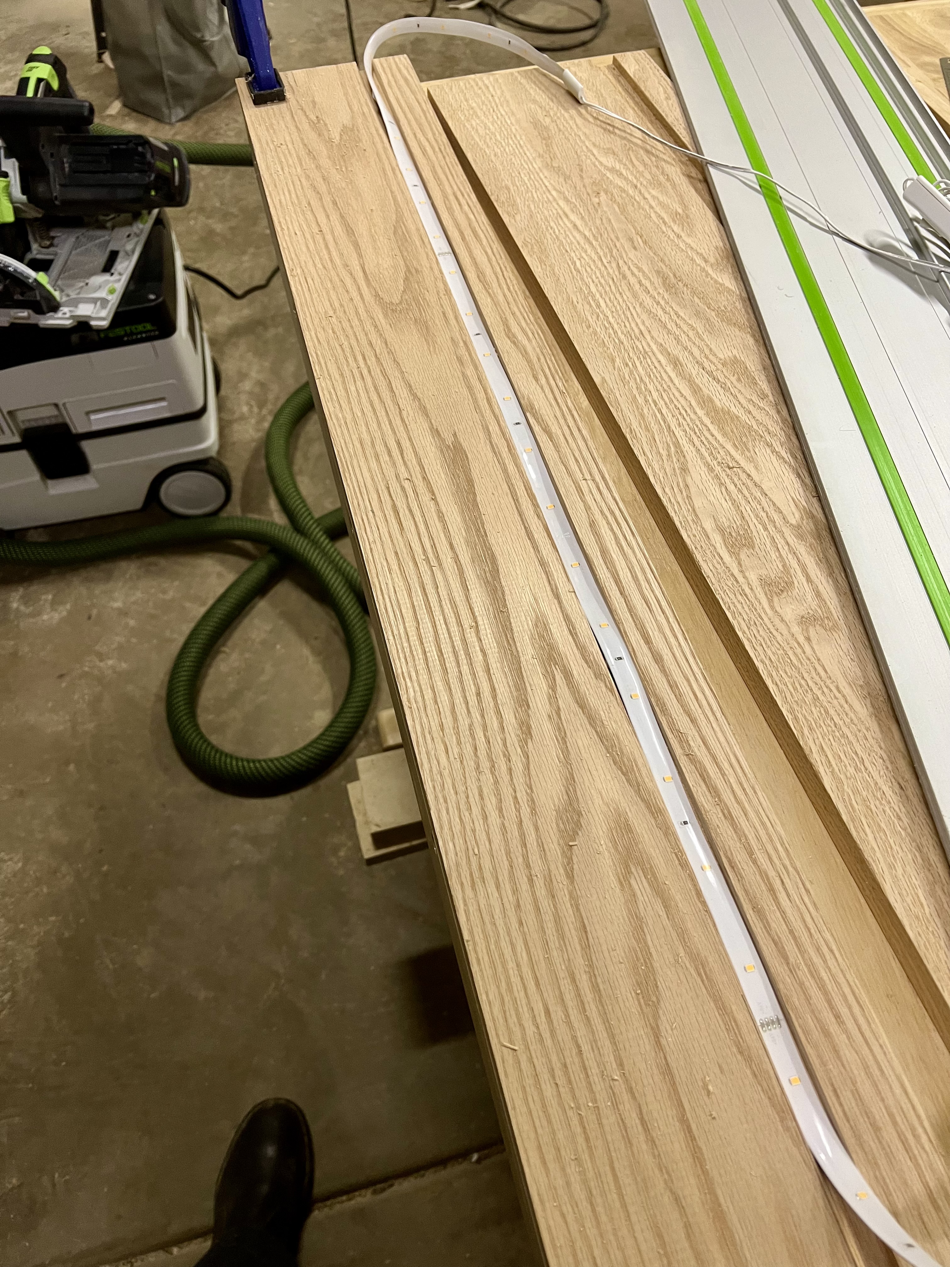 Red oak, LED strip lighting, controlled with HomeKit