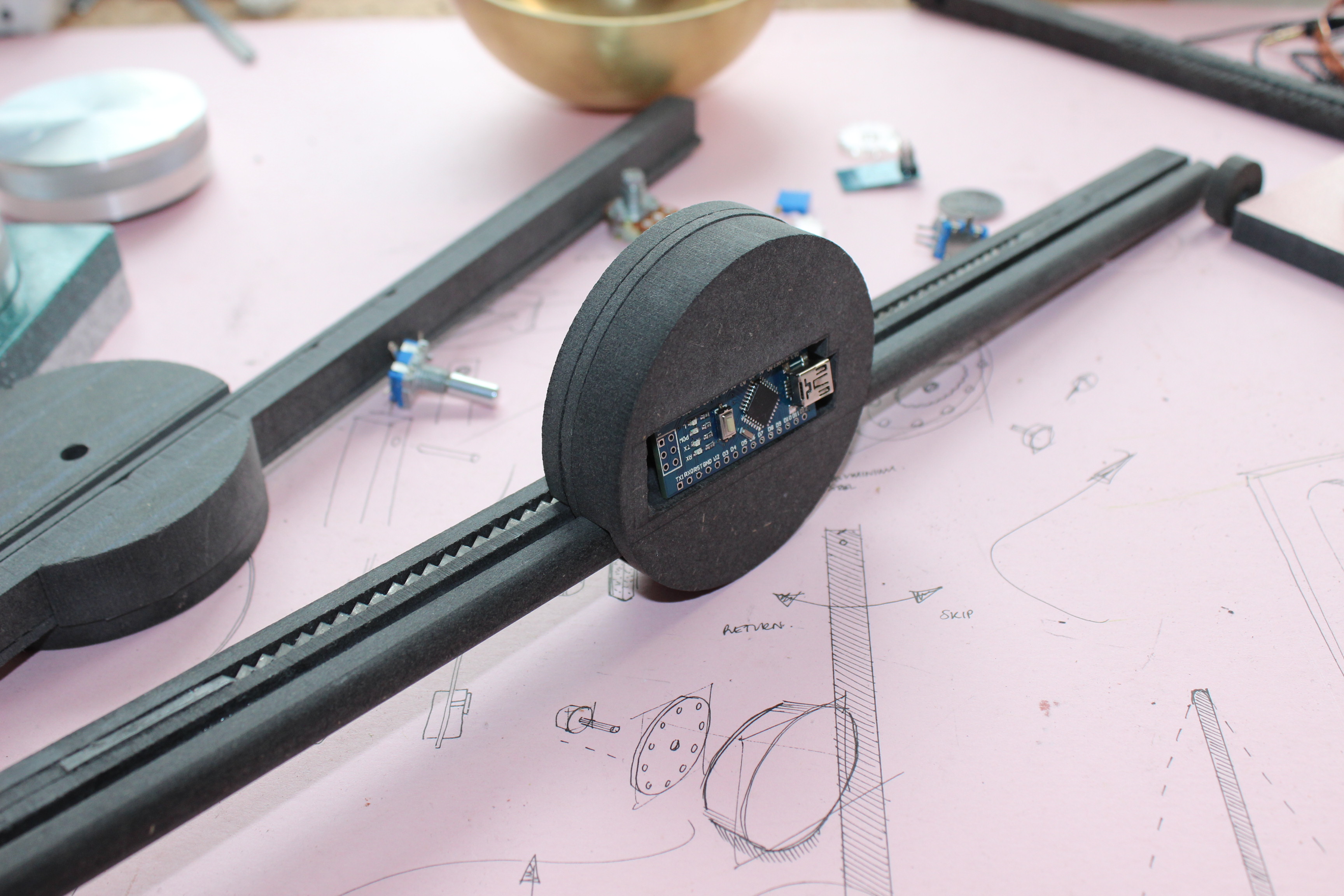Steel, aluminium, Marble, Arduino, potentiometer, copper connectors